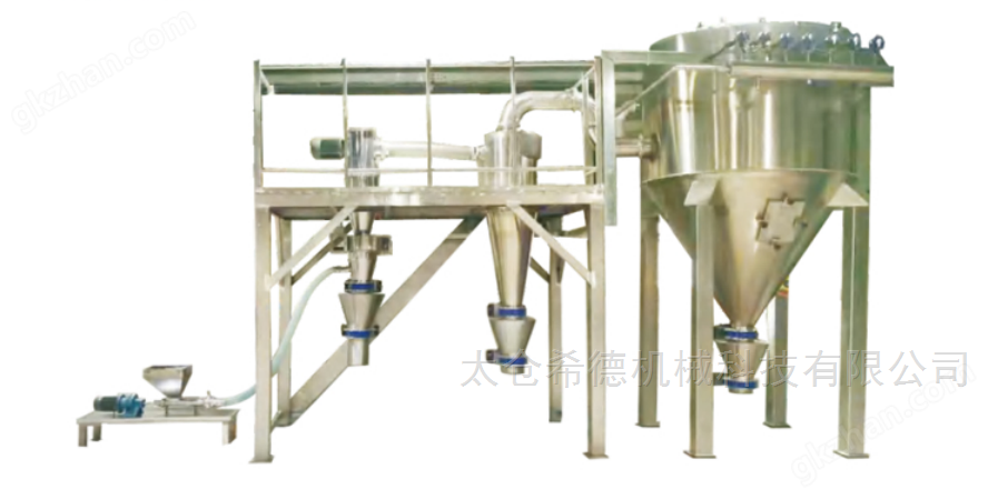 Это через сжатый воздух после замораживания, сушки, фильтрации, так что чистый воздух через измельченное сопло в сверхзвуковой форме в измельченную полость, так что материал течет, ускоренный материал сливается в точке пересечения струйного потока нескольких сопел, вызывая сильные столкновения, трение, сдвиг и достигая сверхтонкого измельчения частиц. Материал входит в зону классификации с восходящим воздушным потоком, и из - за высокоскоростного вращения ступенчатого колеса измельченные частицы одновременно подвергаются действию центробежной силы ступенчатого колеса и центростремительной силы вентилятора для достижения эффекта сита. Частицы, удовлетворяющие требованиям к тонкости, переходят к следующему этапу сбора через зазор в иерархическом колесе, а частицы, не отвечающие требованиям, возвращаются в измельченную полость, чтобы продолжить измельчение.